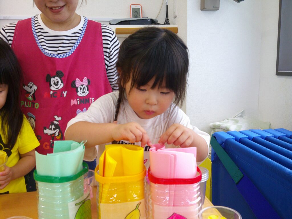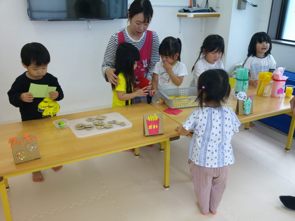 今日、にじ組さんは、前から用意をしていた『お店屋さんごっこ』を行いました。