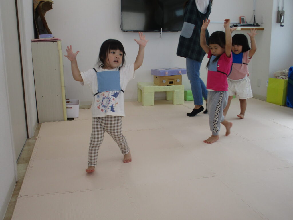 身体を思い通りに動かすことが上手になりました。写真から、みんなが同じ動きをしようとしている様子が伝わってくると思います。