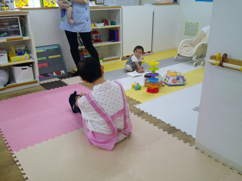 場の雰囲気を壊さないように、静かな声で昭島ドリーム保育園のお友だちの中に入っていく森先生・・・。