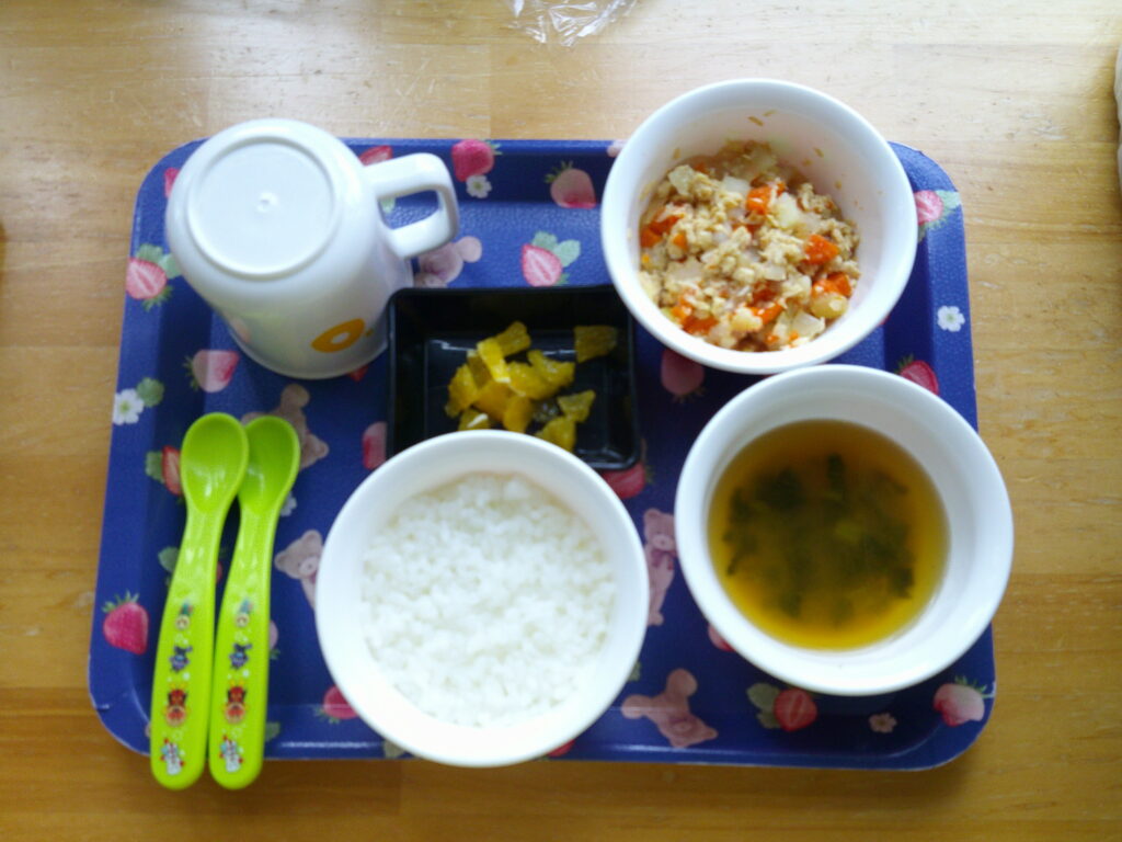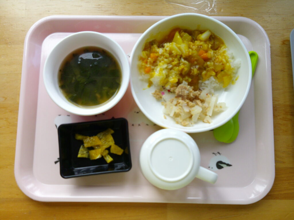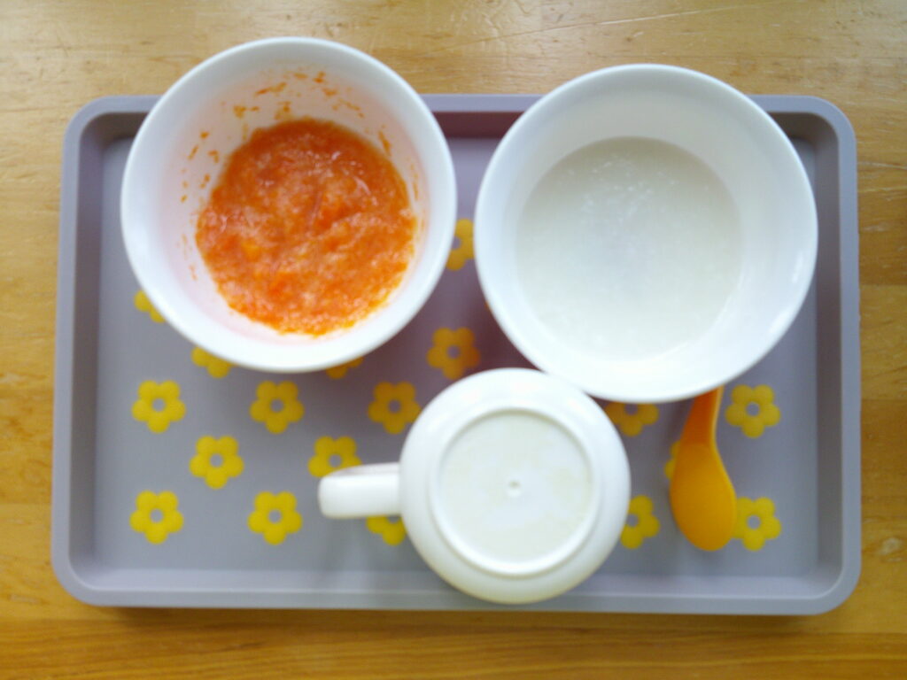 今日の離乳食です。成長段階によって形状や中身を変えています。