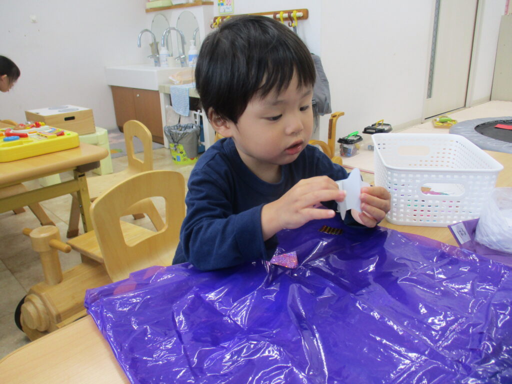魔女のマントを作っているのかな? にじ🌈組さんは無事魔女になれたのでしょうか・・・?