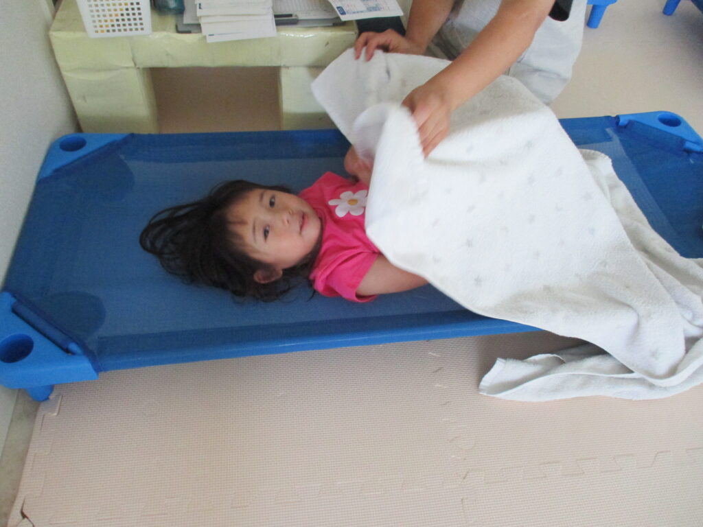 たくさん遊んだので、みんなグッスリと眠る・・・はずでしたが、にじ🌈組さんは体力が有り余っていました~。(^^♪