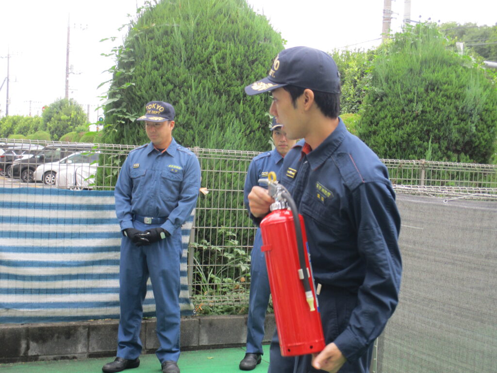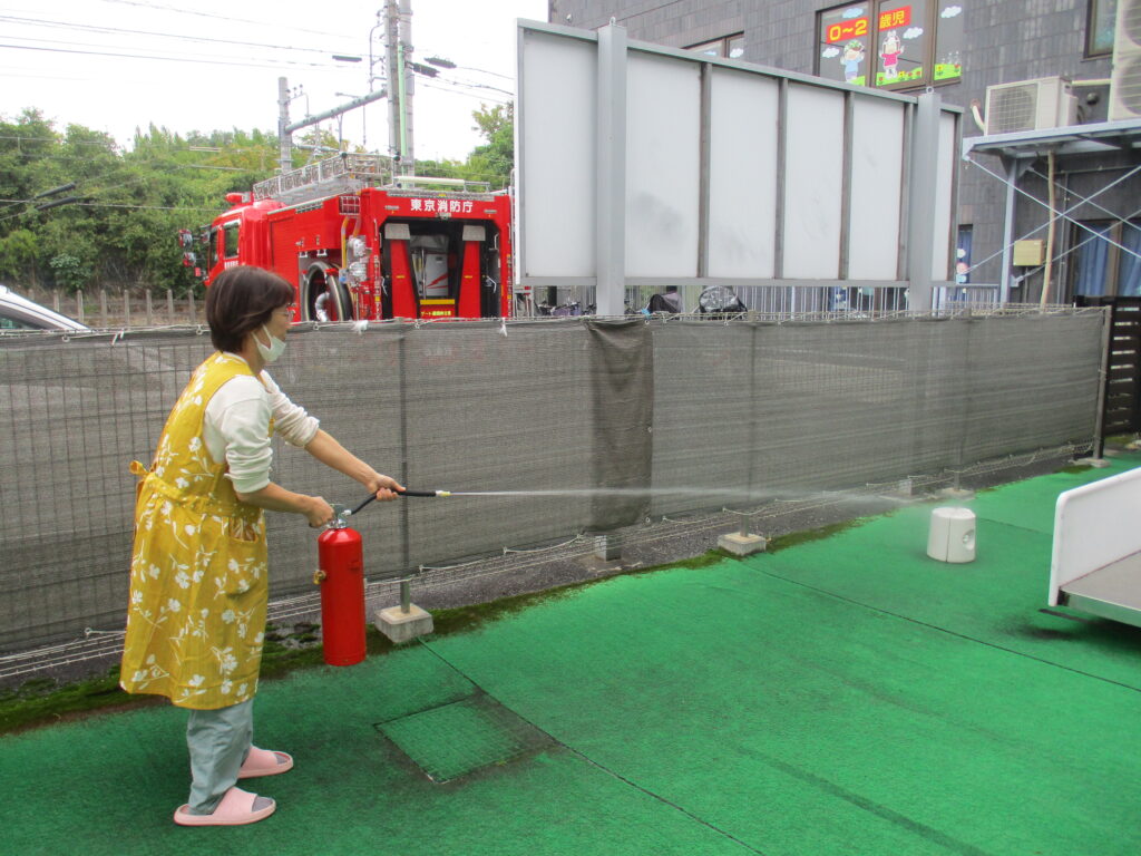 まずは先生たちに、消火器の使い方を教えてくれました。