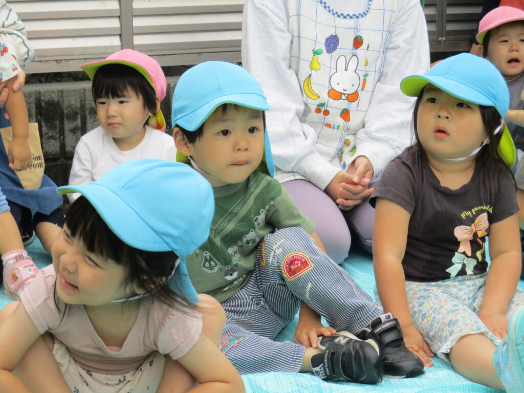 消防車とさよなら~✋をした後は、みんなで園庭で感触遊びを楽しみました。