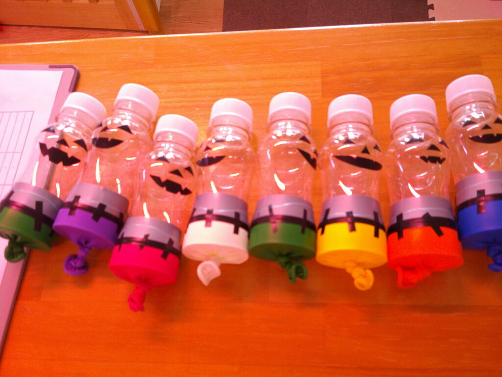 ペットボトルに3つのタマを集めたら、お菓子がもらえるとの事です。