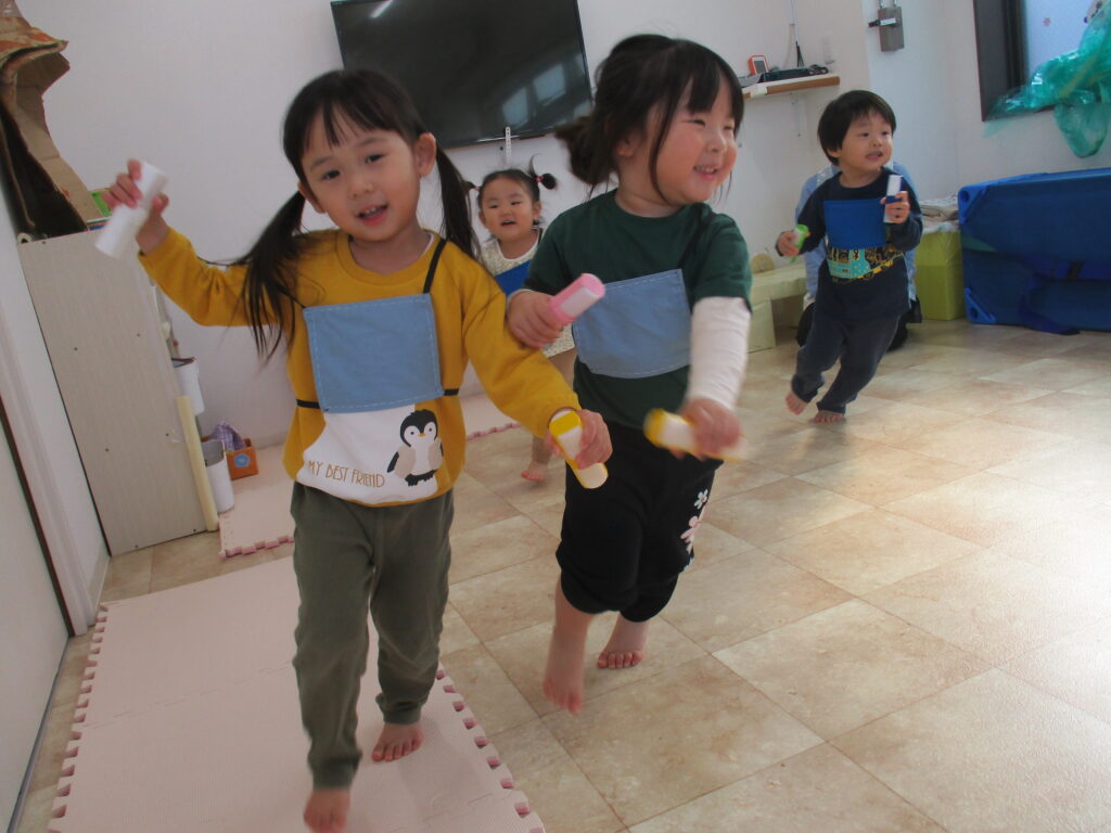 にじ🌈組さんは、音を聞いて身体を動かすことを 思い切り楽しんでいます。🎵 自分の身体を自分でコントロール出来ると楽しいね🎵