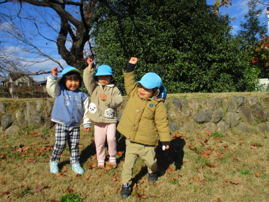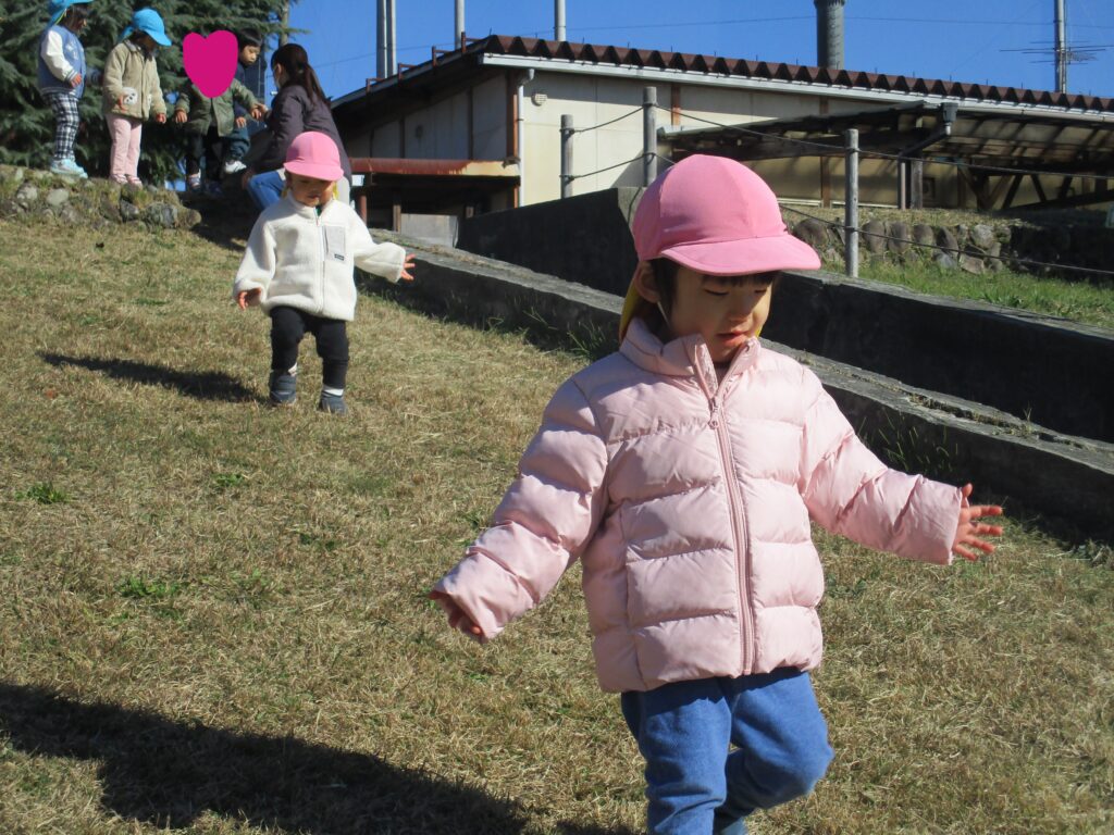 坂道を走ったり、歩いたり、草の中から何か❓を見つけたり、みんなでたくさん遊んで来ました。🎵