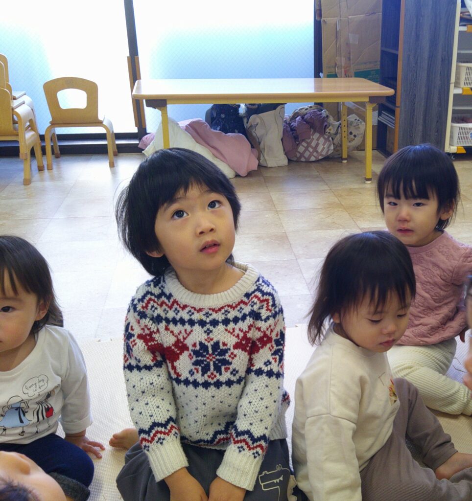 これから、何をするのかな?と楽しみに待つ昭島ドリーム保育園のお友だち。🎅