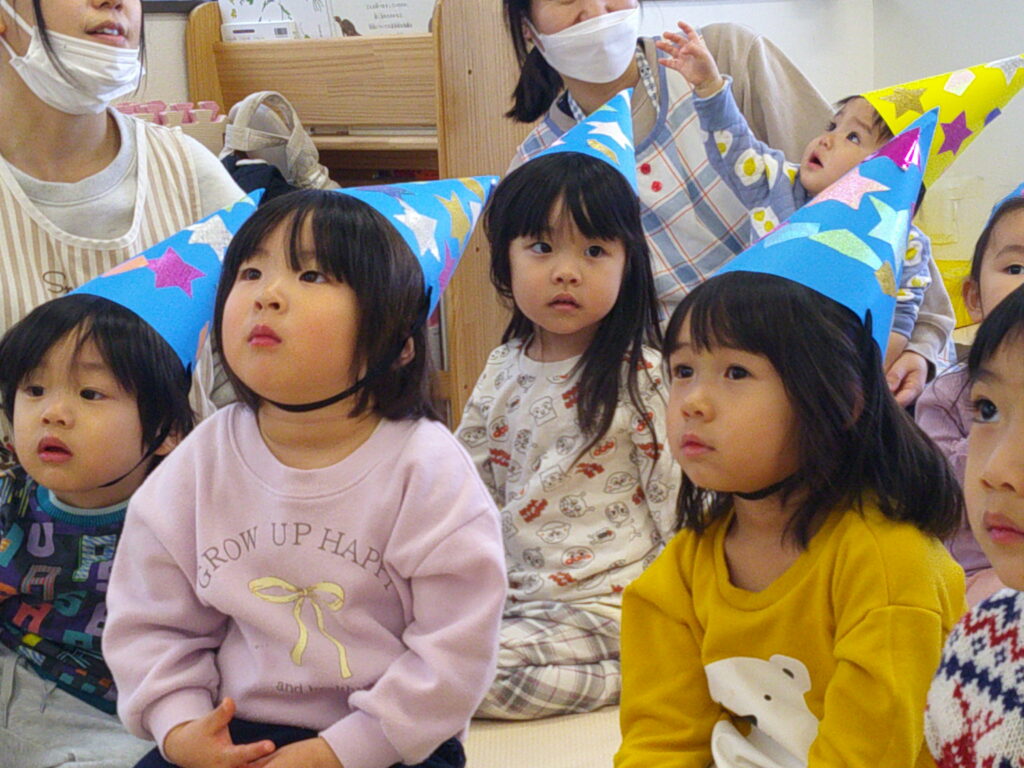 自分で作った帽子をかぶって『クリスマス会』が始まります。
