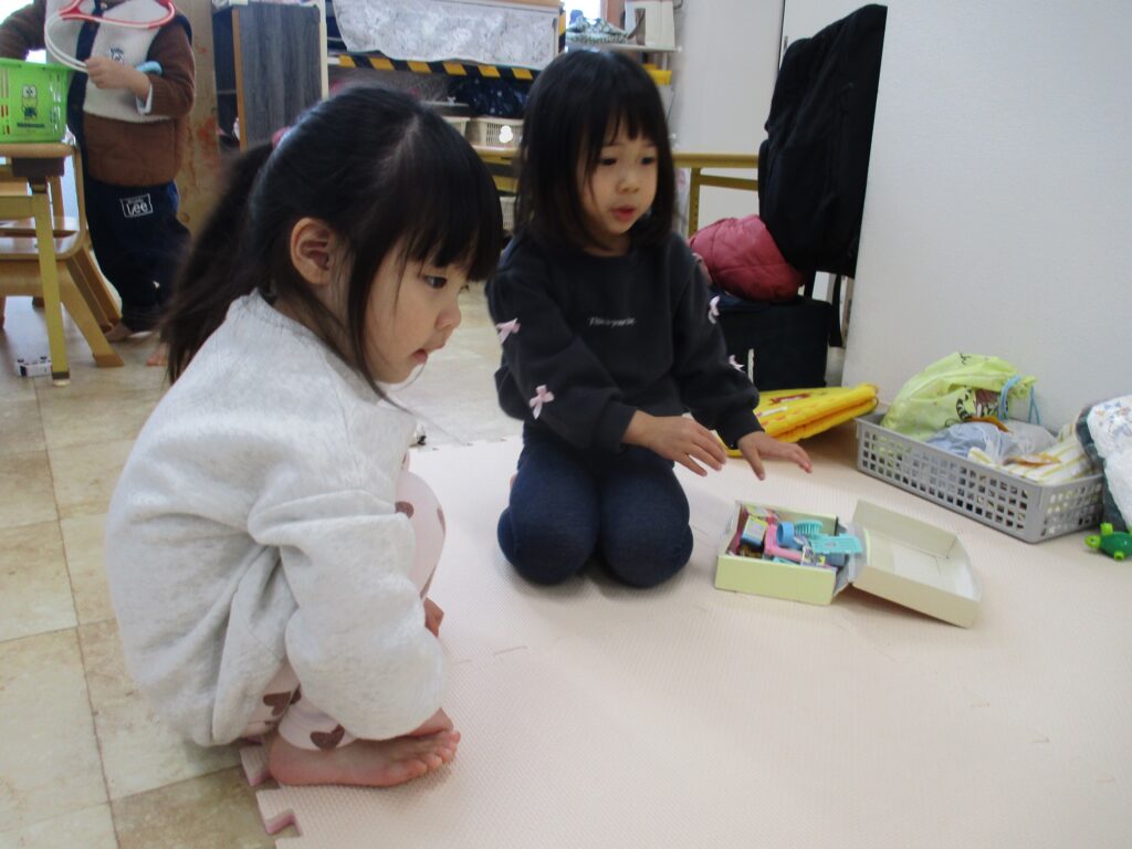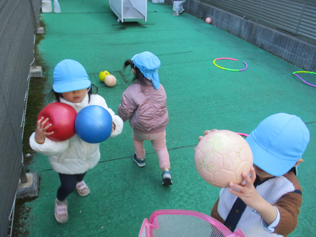 にじ🌈組さんはお部屋で遊んだ後、園庭遊びを楽しみました。