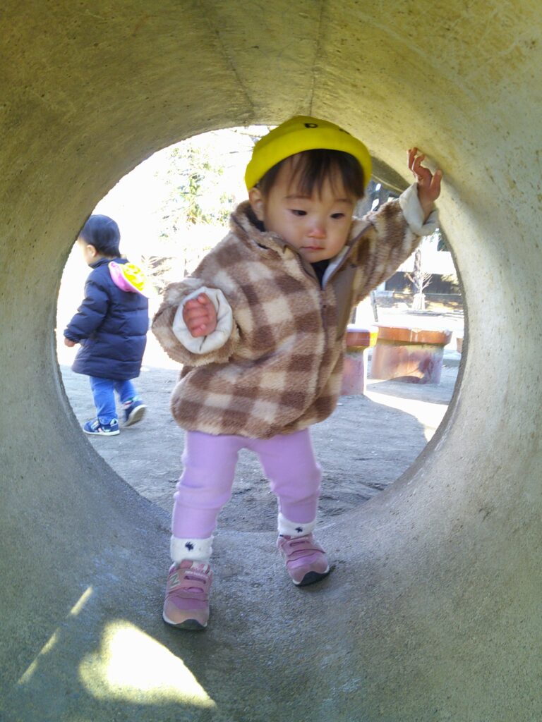 おひさま組さんは、ヨイショ💦と土管の中を歩いてみたり・・・。