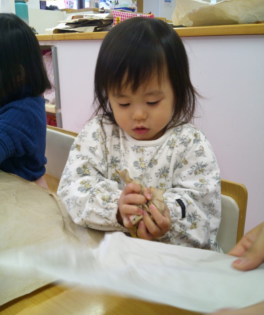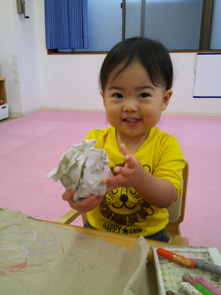 お絵描きをした後は、力をこめて紙を丸めて、みんなでおにぎり🍙作りに挑戦!!
