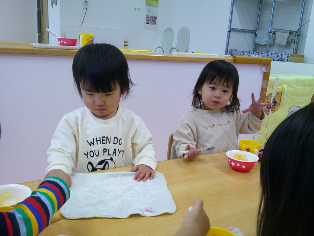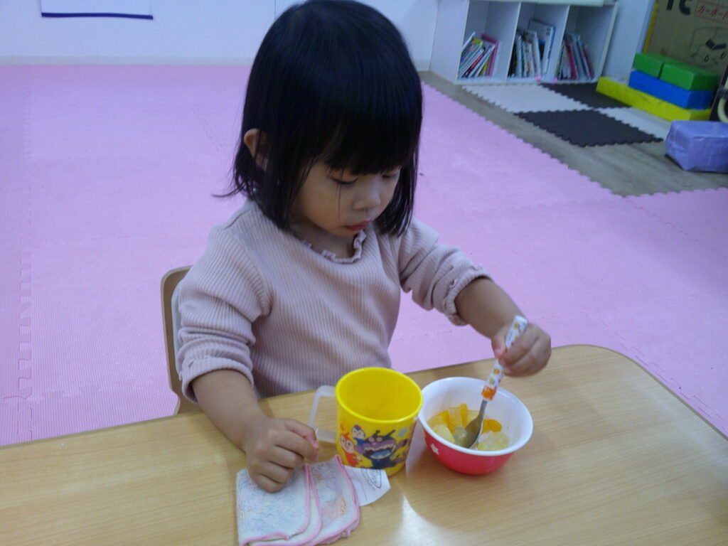今日は給食の写真がうまく撮れず、おやつの様子をご覧ください。