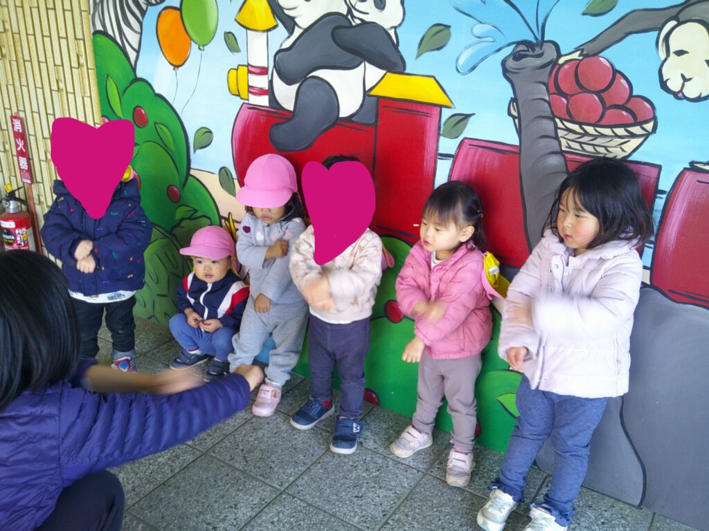 今日、にじ🌈組さんは進級園の『ミナパもくせいのもり子ども園』へ行ったため、ほとんどのお友だちがお休みとなりました。 そこで、全クラス一緒にお散歩に行って来ました。